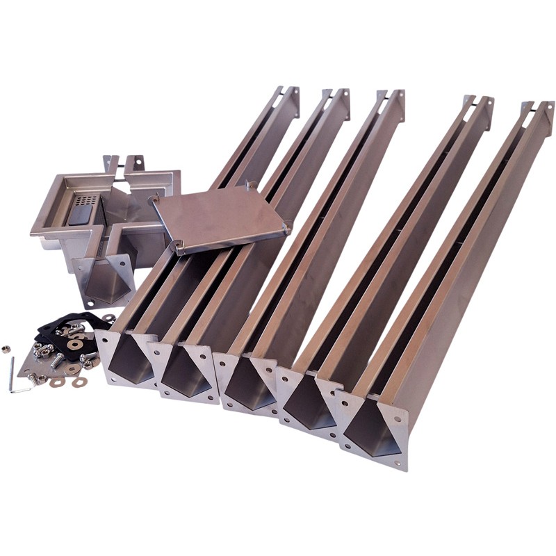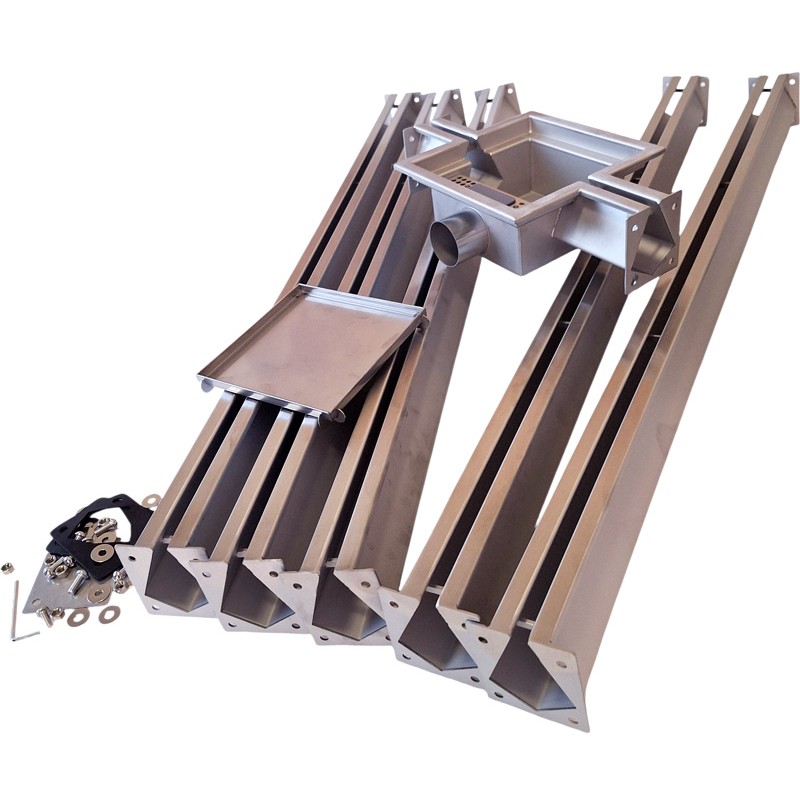 Kratka spustowa to oczywiście z punktu widzenia funkcjonalności niezębny element zestawu, gdyż ramiona same, bez tego elementu nie spełniają jeszcze swojej funkcji. Z punktu widzenia technicznego jest to po prostu odwodnienie punktowe garażu, ale z możliwością przedłużenia o dodatkowe kanały, aby system odwadniający mógł zbierać wodę z większej powierzchni. To umożliwia nam choćby mycie podłogi z pomocą strumienia szlaucha. W tym zestawie znajduje się kratka spustowa 2 EXITS - ale w naszej ofercie są także zestawy z kratką spustową 1-EXIT (z jednym wyjściem na dodatkowe kanały).